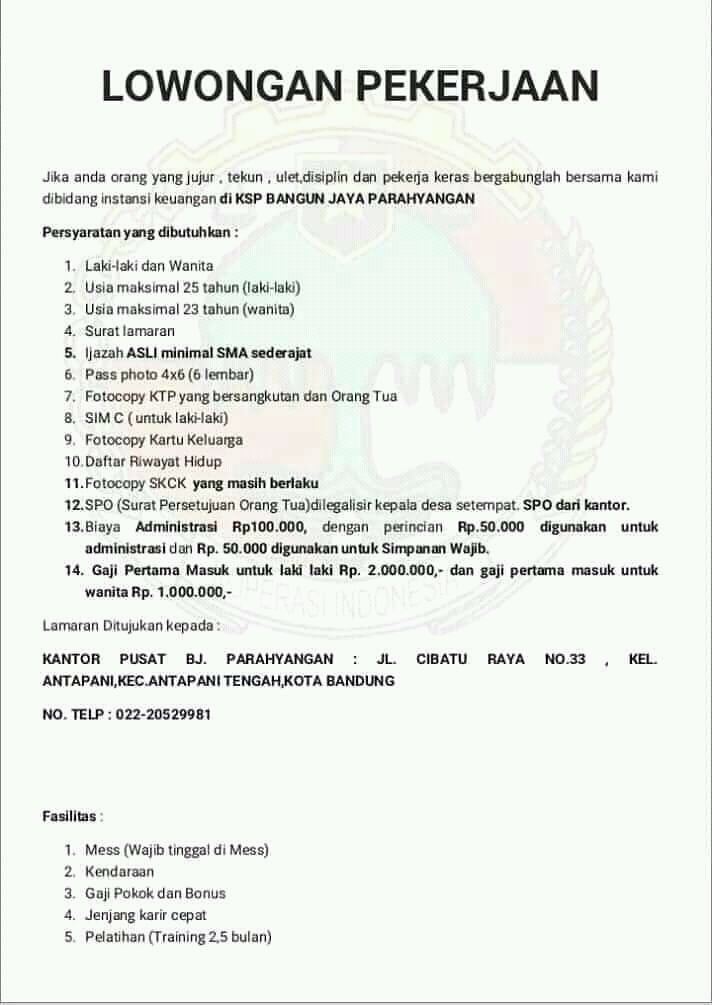 Loker Pos Kota : (Lowongan Kerja) Dibutuhkan Staff Wanita di Agen Kantor ... : Akan tetapi, khalawi menegaskan anggaran pembangunan rumah tapak negara atau perumahan bagi para pejabat negara tersebut tidak berasal dari anggaran pendapatan dan belanja negara (apbn) melainkan dari kerjasama.. Pt haleyora powerindo merupakan anak perusahaan pt pln ( persero). Jun 09, 2021 · ibu kota negara tahun ini kita belum membangun, tahun depan perumahan, ungkap khalawi dalam rapat tersebut, rabu (9/6/2021). Jun 27, 2021 · cek loker yang terbuka disini sebanyak 6 perusahaan yang membuka lowongan kerja di bulan juni 2021 dengan kualifikasi di banyak jurusan. Informasi lowongan kerja cpns bumn juli 2021, lowongan kerja cpns 2021, bank, pegadaian, pertamina, bpjs, kesehatan, smp, sma, smk, d3, s1 juli 2021 Lamaran harus lewat pos :